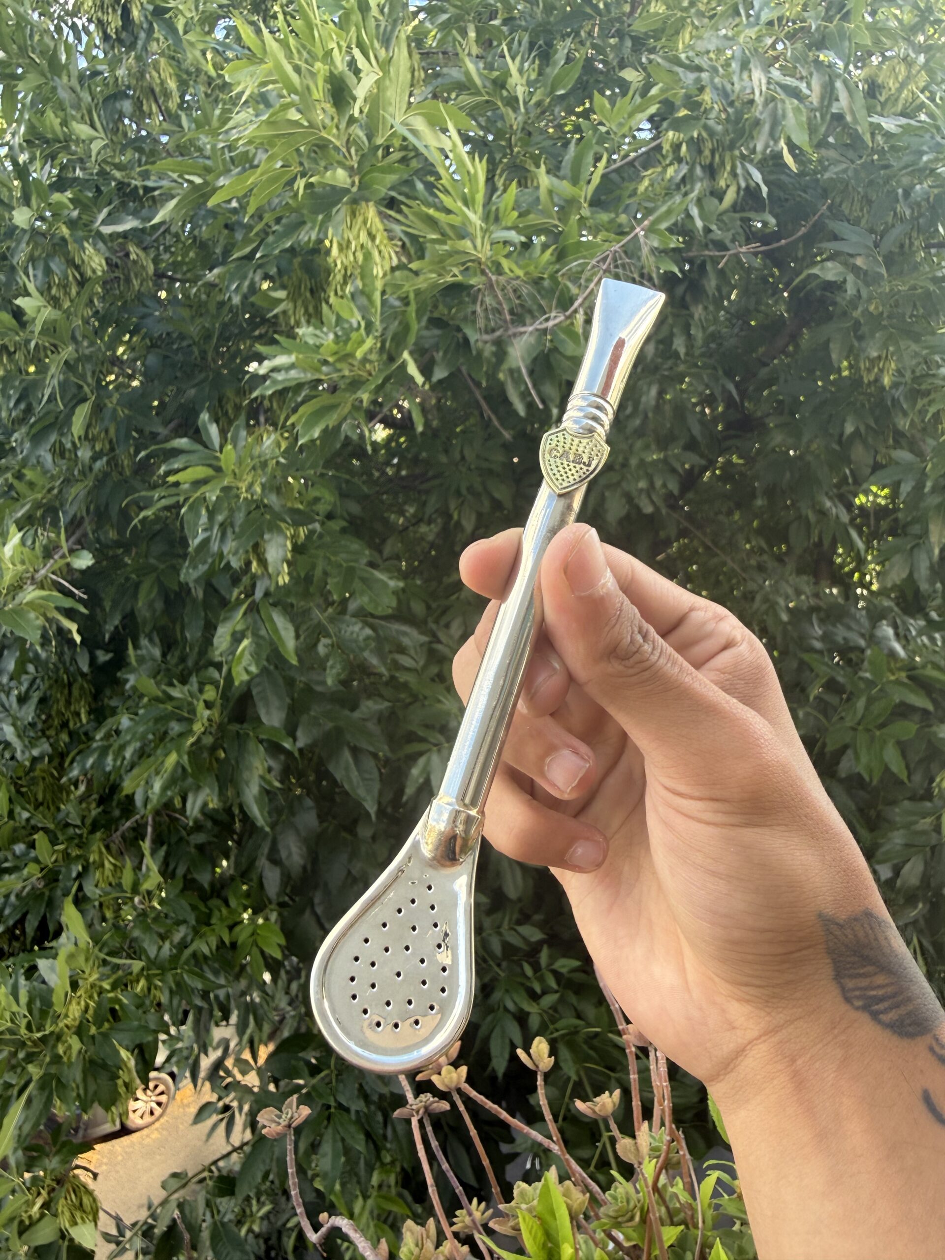 Bombillon con escudo de Boca. De acero inoxidable y escudo de alpaca.